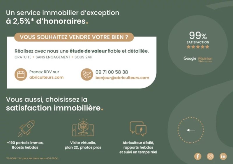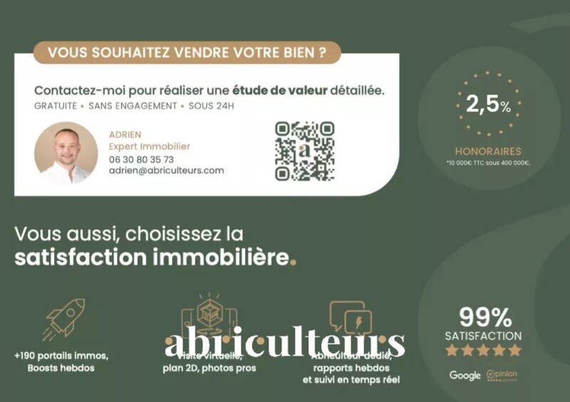 Abriculteurs vous accompagne dans votre projet et cherche pour vous la perle rare parmi les biens immobiliers de son réseau ! Pour cela, il vous suffit de nous laisser vos critères.