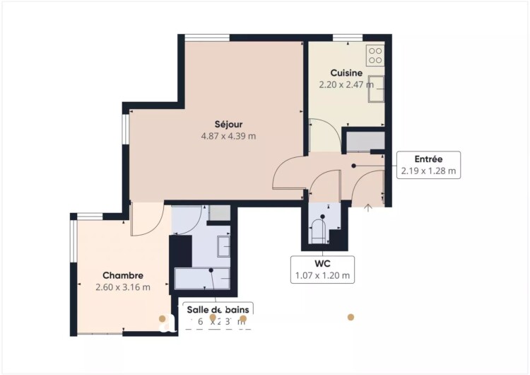 - Surface Carrez 42.74 m²