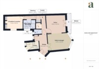 L’appartement, lumineux grâce à de larges ouvertures, offre un double séjour convivial ouvrant sur un petit extérieur orienté nord-est. Cet espace modulable permet aisément de créer une seconde chambre selon les besoins.