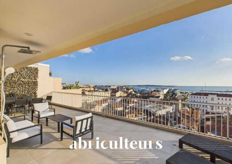 Le bien bénéficie de 86 m² de terrasses, dont 46 m² exposés plein sud, offrant des vues dégagées sur la mer, le Vieux Port et les toits de Cannes.