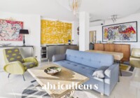 L’appartement s’ouvre sur un séjour lumineux, bénéficiant d’une exposition traversante Sud / Nord, avec une cuisine semi-ouverte entièrement équipée, offrant un accès direct à une des terrasses.