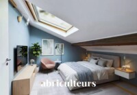 À l’étage, l’espace nuit propose trois chambres sous pente (ou deux chambres + un bureau selon vos besoins), une salle de bain avec WC ainsi que de nombreux rangements optimisés.
