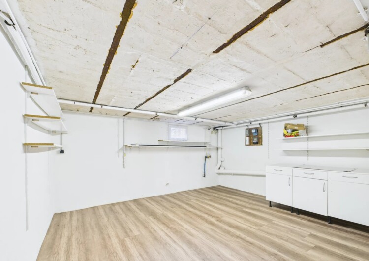 Le sous-sol total (entresol) dispose d'une buanderie et d'un espace de stockage, offrant la possibilité d'aménager une troisième chambre ou une salle de jeux.