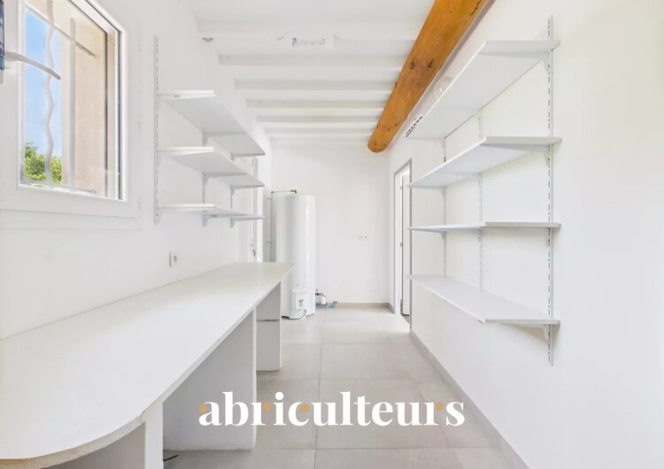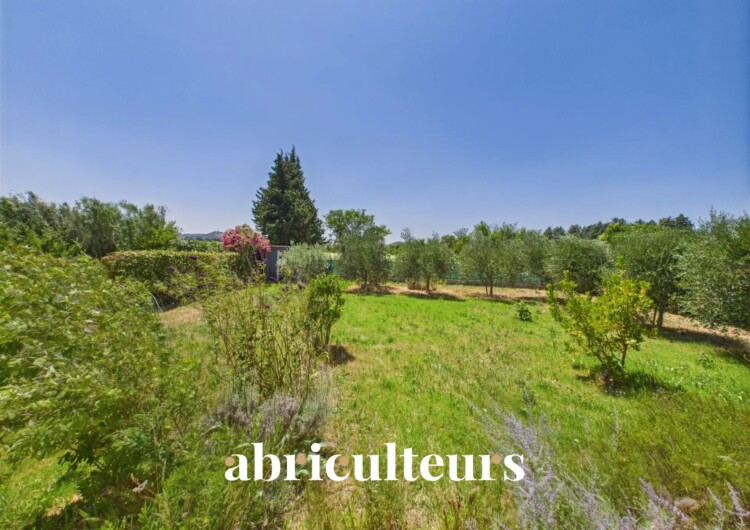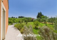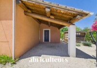 À l’extérieur, le jardin clos de 1 068 m² se compose de deux terrasses, au nord et au sud, ainsi que de deux abris de jardin. Il est agrémenté d’oliviers, de baies (fraisiers, framboisiers) et de plantes aromatiques (verveine, romarin…).