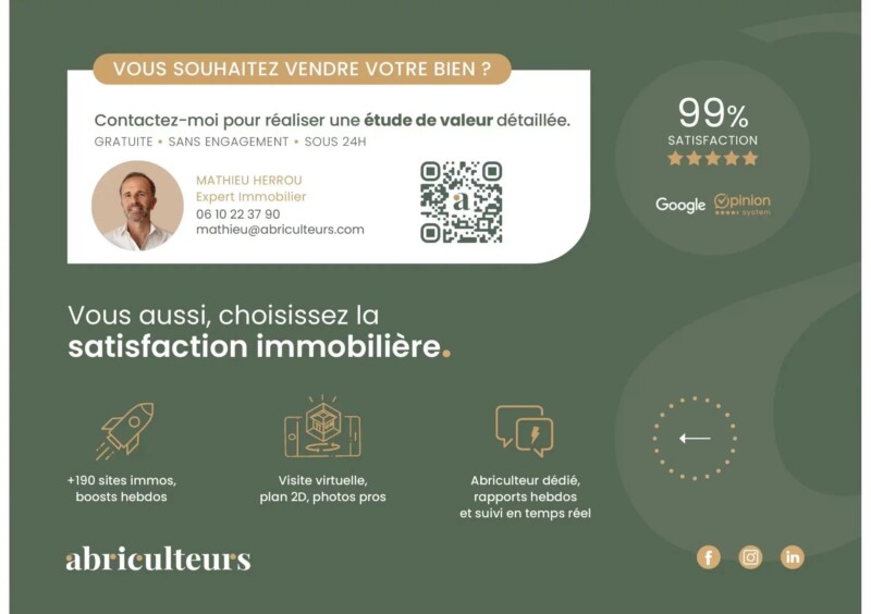 Bienvenue chez Abriculteurs, l’agence familiale qui s’engage à un service d’exception. Découvrez une présentation soignée de ce bien : des photos pro, un plan détaillé et une visite virtuelle immersive pour vous projeter. Faites confiance à notre expertise pour transformer vos projets immobiliers en réussites remarquables.