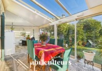 Le rez-de-chaussée, d’une surface de 136 m², s’organise autour d’un salon-salle à manger agrémenté d’une cheminée avec insert. Une véranda en aluminium prolonge agréablement cet espace de vie. La partie nuit se compose de trois chambres, dont une suite avec salle d’eau, ainsi que d’un bureau, d’une salle de bains et d’un WC indépendant.