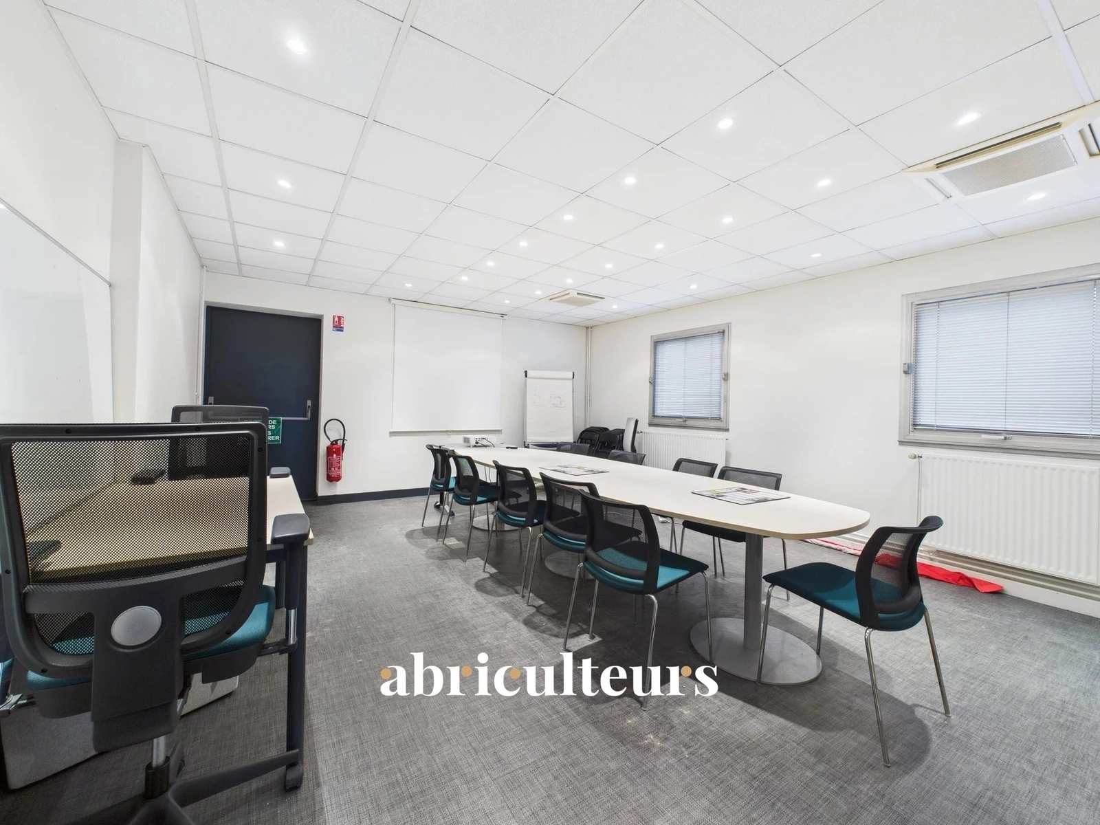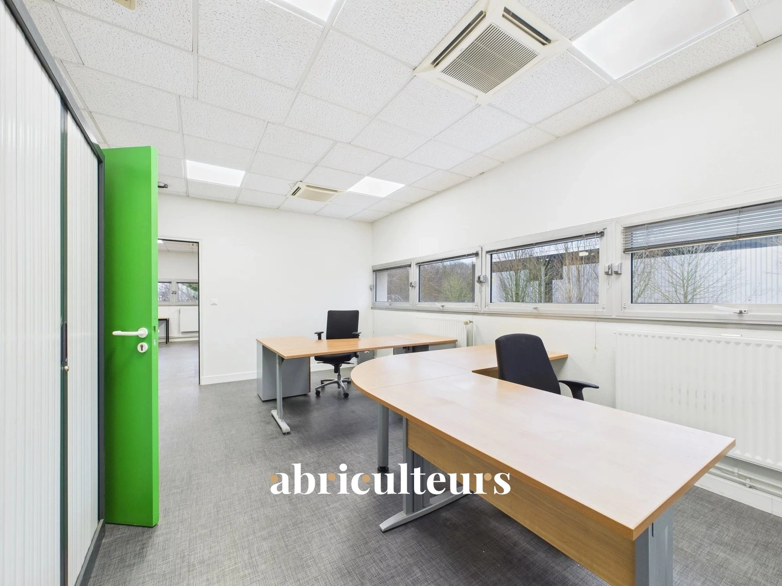 Situé au 1er étage du bâtiment, avec accès par un escalier indépendant. Plateau aménagé : WC, bureaux, open space, espace repas aménageable, parking de 4 places. Salle de réunion possible de 30 m² à partager. Bureau climatisé et chauffé au gaz.