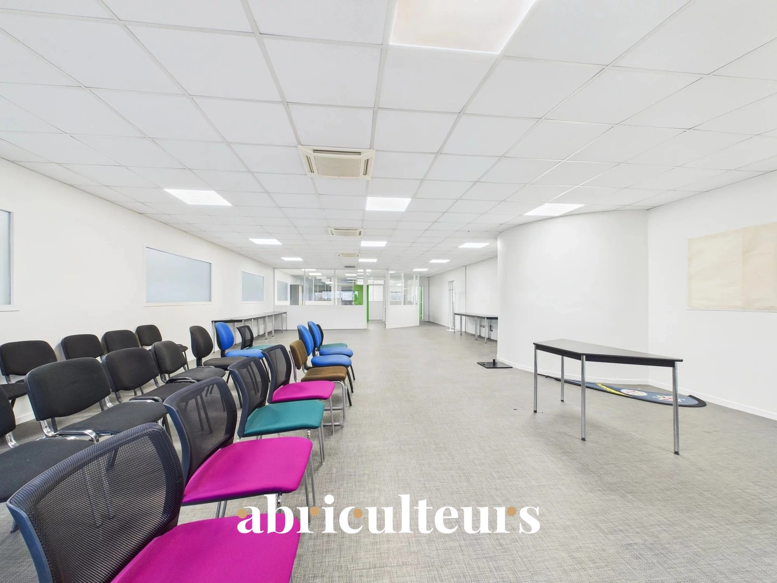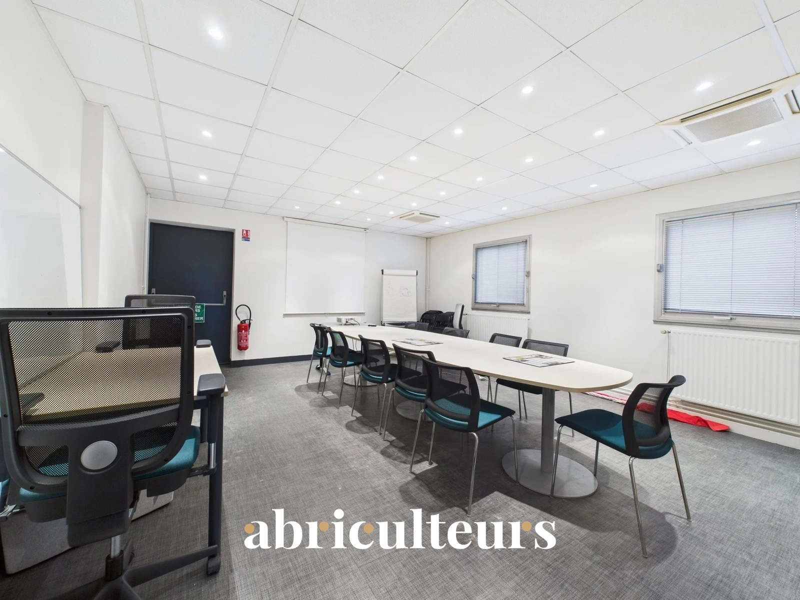 Situé au 1er étage du bâtiment, avec accès par un escalier indépendant. Plateau aménagé : WC, bureaux, open space, espace repas aménageable, parking de 4 places. Salle de réunion possible de 30 m² à partager. Bureau climatisé et chauffé au gaz.