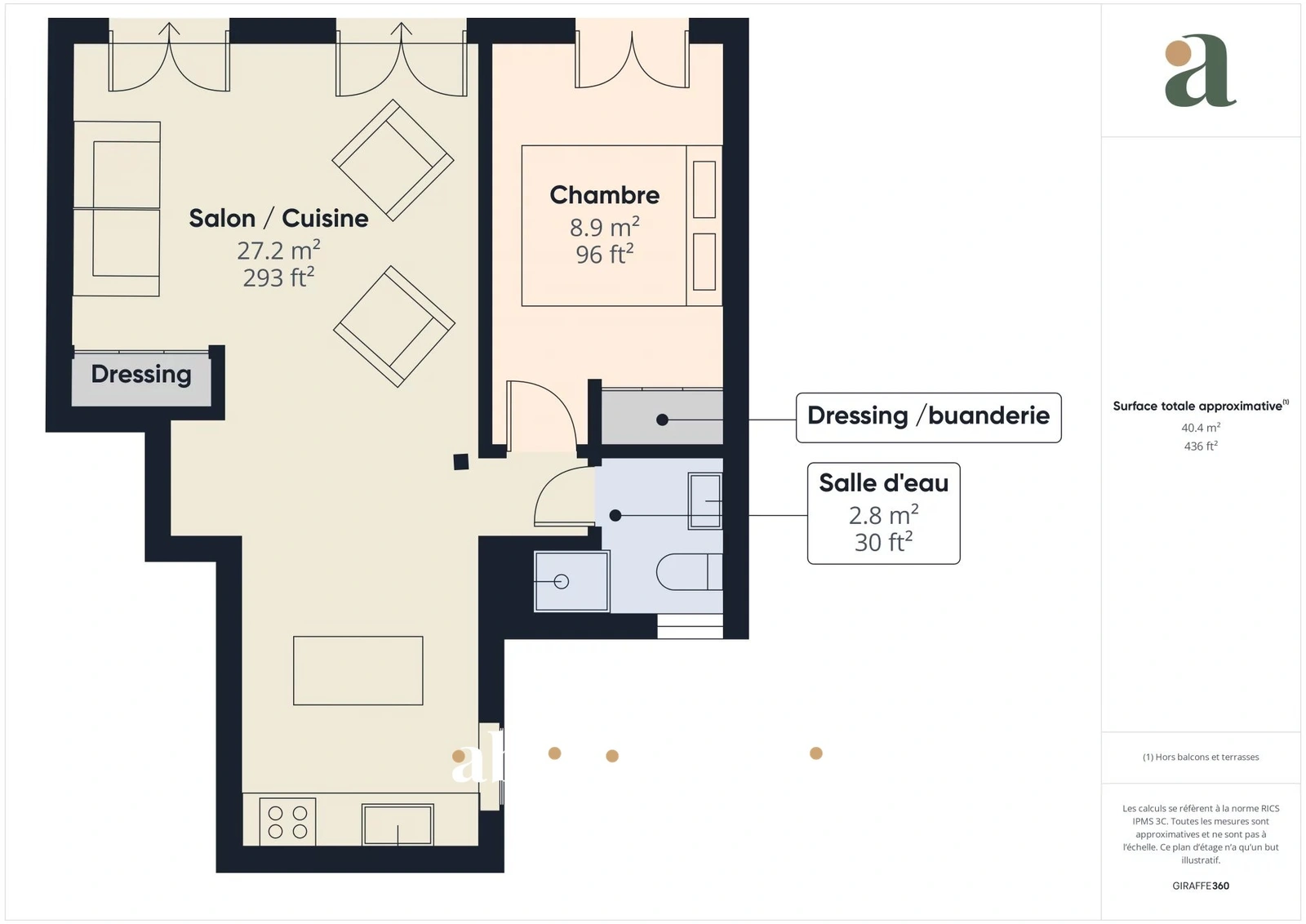 L’appartement est lumineux, il se compose d’un séjour avec cuisine équipée, d’une chambre agréable ainsi que d’une salle d’eau moderne avec douche et WC avec fenêtre. Des rangements ont été prévus dans la chambre et le salon.