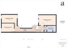 À l'étage, deux chambres offrent une vue sur la terrasse, tandis que la chambre parentale de 16 m² donne sur le patio. Une salle de bains avec toilettes complète cet espace.