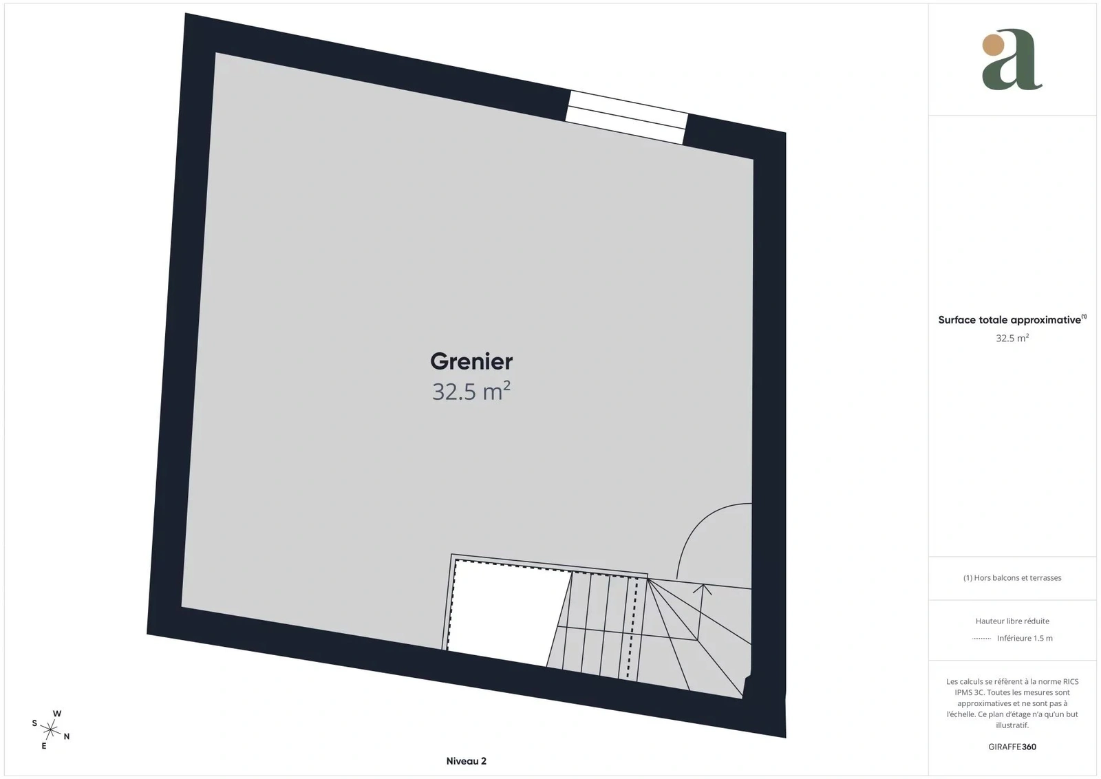 Le dernier niveau révèle un grenier aménageable de plus de 30 m². Cet impressionnant volume permet de laisser libre cours à votre imagination : création d'une vaste suite