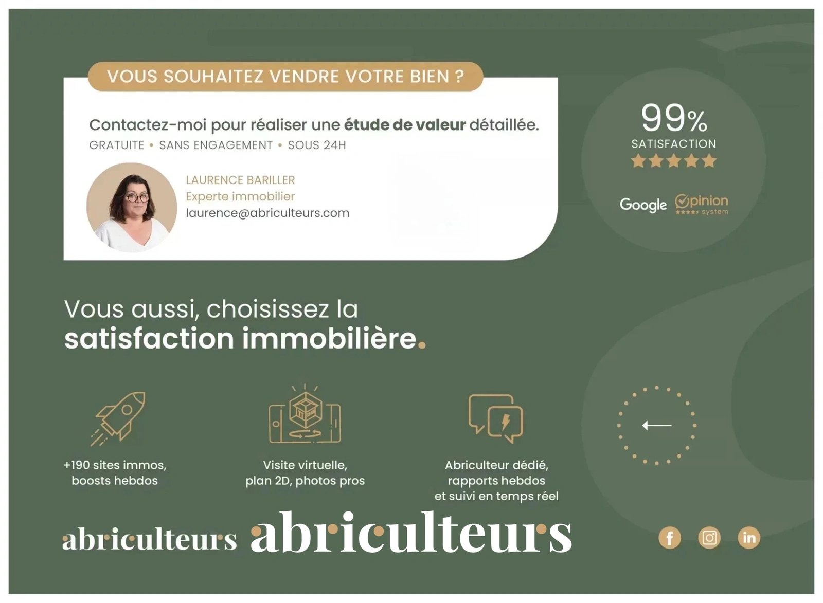 La présente annonce immobilière a été rédigée sous la responsabilité éditoriale de Madame Laurence BARILLER, agent commercial (EI), immatriculé au RSAC de la ville du Mans sous le n° 831 315 809, sans détention de fonds, agissant pour le compte de la SARL Abriculteurs immobilier, au capital de 5 000,00 €, immatriculée sous le numéro de SIREN 837 704 584, titulaire de la carte professionnelle n° CPI 7501 2018 000 025 842 délivrée par la CCI de Paris Ile-de-France, dont le représentant légal est Monsieur Adrien Piot, ayant son siège social au 12 rue des Halles, 75001 Paris.